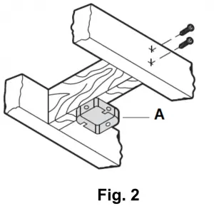 - Secure the outlet box (A) (not included) directly to the building structure. Use appropriate fasteners and materials (not included). The outlet box and its bracing must be able to fully support the weight of the moving fan (at least 35 lbs). Do not use a plastic outlet box.