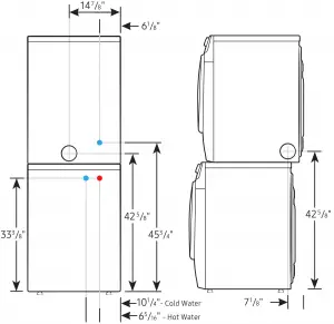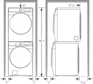 Clearances indicated are for stacked pairs. The closet front must have two unobstructed air openings for a combined minimum total area of 72-inch2