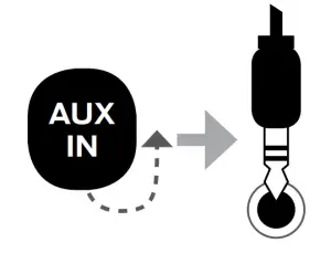 - Connect a music device to the AUX IN port with a standard 3.5 mm jack. The speaker will automatically change to AUX mode.