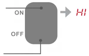 (“HI” will appear on the LED display. The speaker will connect to the last selected source.)