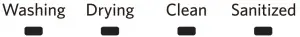 The display will indicate cycle progress such as Washing, Drying, Clean, and Sanitized. The cycle has completed when the Clean light is lit. Refer to the Control chart in the Cycle Guide section for operation of the Sanitized indicator.