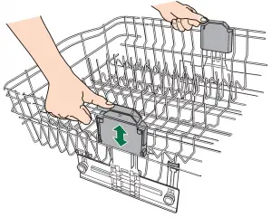 You can raise or lower the top rack to fit tall items in either the top or bottom rack. Adjusters are located on each side of the top rack.
