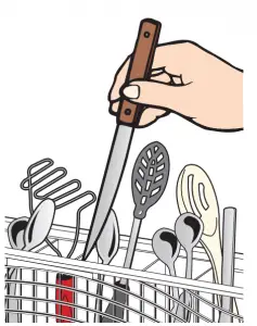 - When loading silverware, always place sharp items pointing down and avoid “nesting” as shown.