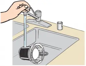 Rinse filter under running water until soils are removed. If you have hard to remove soils or calcium deposits because of hard water, a soft brush may be required.