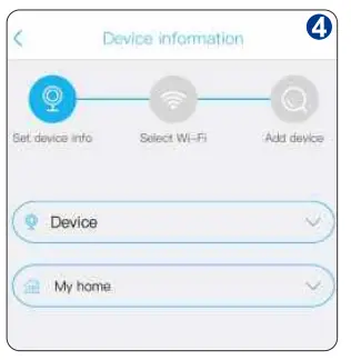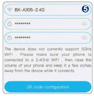 Note: If blue light not flashing, please press reset button at the back of camera for 3 seconds to reset it. - Input the WiFi name & password. The same WiFi your phone connected to.