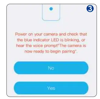 - Turn on your camera. Wait for the blue light flashing. Click “Yes” to move on.