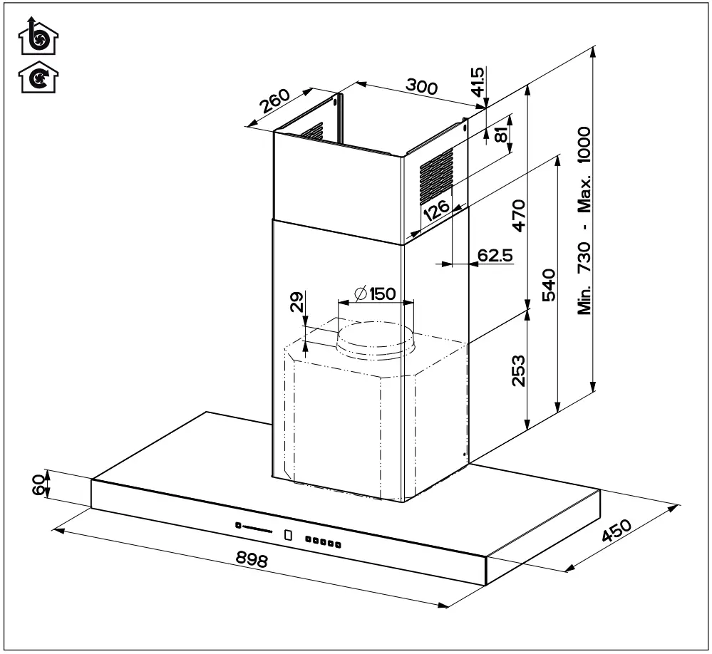 BLAUPUNKT 5DS69770 Wall Mounted Extractor Hood