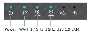 - Check the WAN and 2. 4GHz / 5GHz LED lights to ensure the hardware connection is ready.