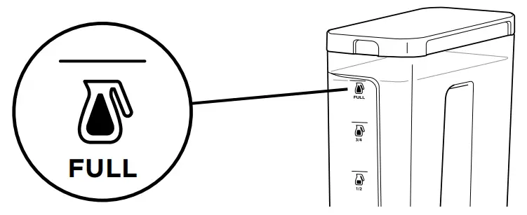 - Fill the water reservoir to the Full line with fresh water and place it on the base.