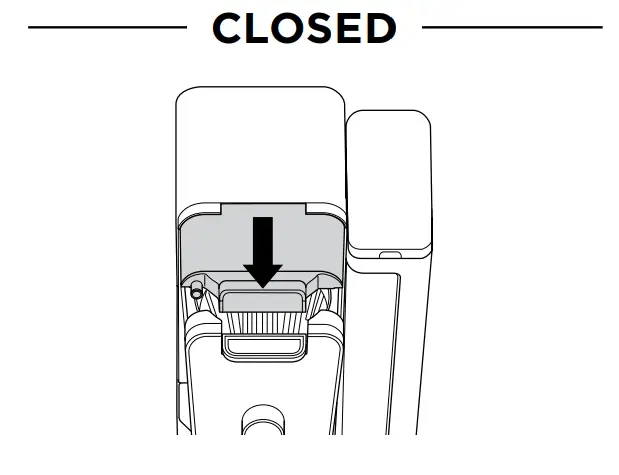 Slide the sliding lid forward, ensuring it is completely closed. | Firmly push down on the handle to pierce the pod. Some noise and resistance is normal. |