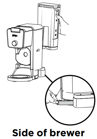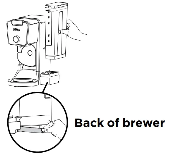 Remove the reservoir from the base. Remove the removable latch from the back of the brewer