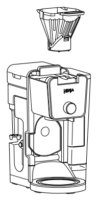 - To uninstall the adapter, remove the used pod and close the handle. Push the handle away from you so the position indicator is in the REMOVE position. Then, using the edges on the left and right, lift the adapter out of the brewer.