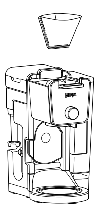 Ensure the brew basket is installed and the Ninja Pod Adapter is removed. Then, insert a paper filter in the basket (refer to steps on pages 4 and 5) | Ensure the brew basket and Ninja Pod Adapter are installed in the brewer (refer to steps on pages 4 and 5) |