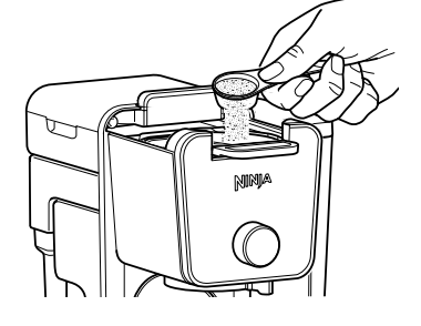 Use the Ninja Smart Scoop™ to add your desired amount of coffee grounds (refer to the Smart Scoop section on page 5). | Lift adapter handle to reveal pod holder and insert a pod. |
