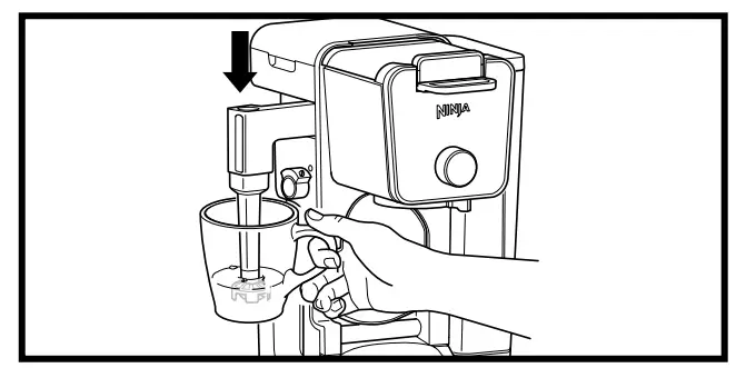 - Swing the arm of the frother toward the front of the brewer. Install the frother whisk by twisting it to the right.