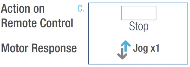 c. Press and hold (about 2sec) “Up” and “Stop” buttons simultaneously until motor jog x2.