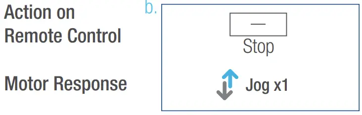 b. Press and hold (about 2sec) “ Down” and “Stop” buttons simultaneously until motor jog x2.