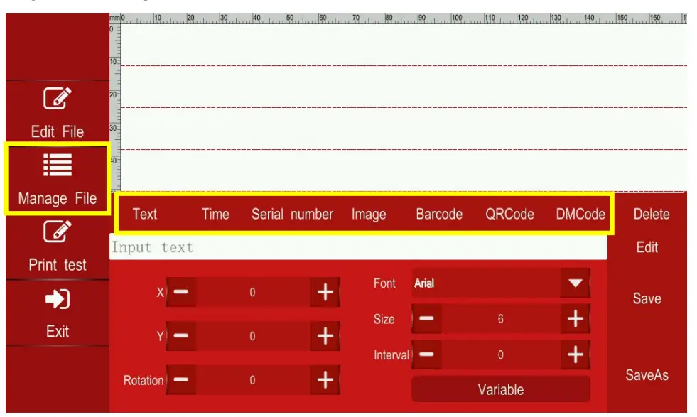 d. You can adjust the font, character size, interval, and rotation of print