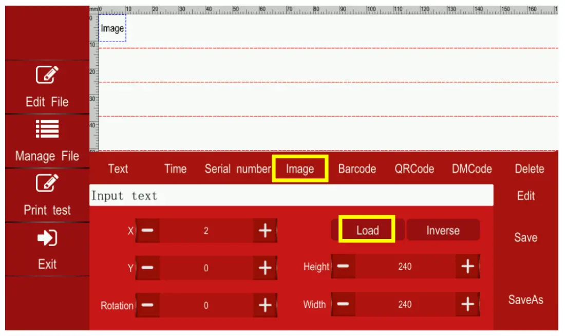 c. From the message editor screen select “Image” – Select “Load” to view or import any images into the editor