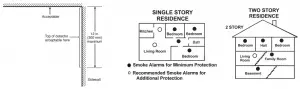 For minimum protection, smoke alarms should be installed in compliance with H.U.D. Manufactured Home Construction Safety Standards, Title 24 CFR, Section 3280.208 and Section 3282. For additional protection, see Single Story Residence smoke alarm requirements/recommendations for Existing Homes and New Construction Homes.