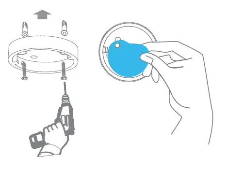 – Remove the double-sided adhersive and stickalarm into ceiling