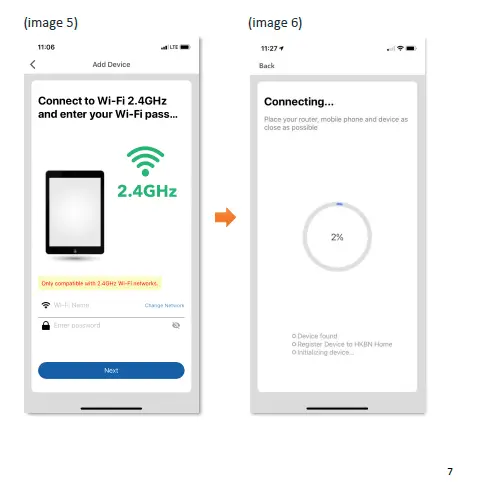 - Select 2.4GHz Wi-Fi network and enter password* and then tap “Next”. (image 5)
