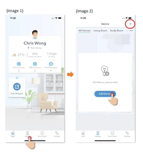 - Tap “Add Device” button OR “+” icon at top right corner if you already have paired device. (image 2)