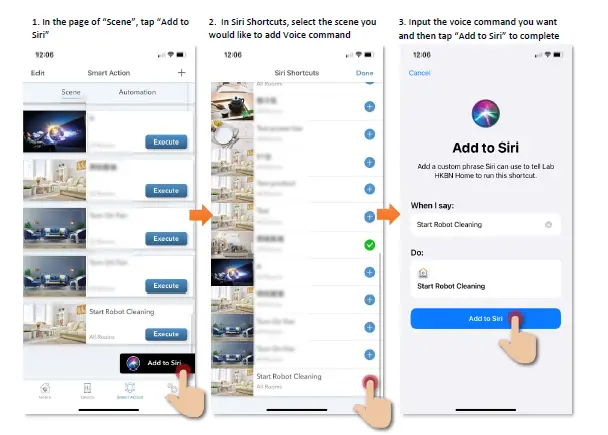 The integration of different smart devices is the beauty of smart home living which provides convenience and many possibilities of creating your preferred control settings. By setting SCENE, you can execute different smart devices at the same time by only one single tap. You can tailor make your unique scene such as movie time scene, welcome/back home scene, reading scene etc. User Voice Command to Turn On/Off cleaning