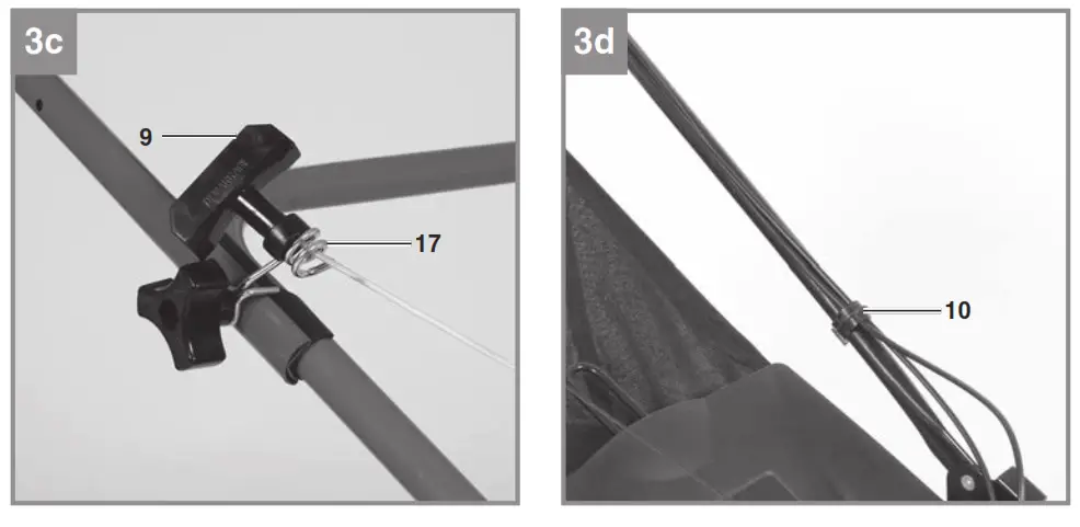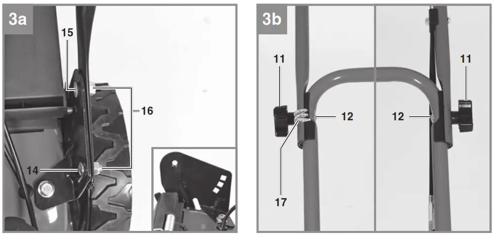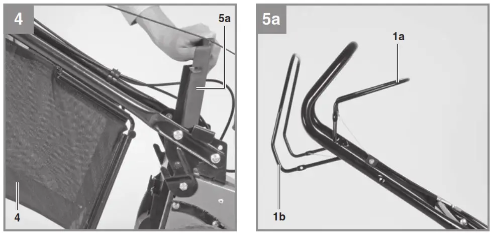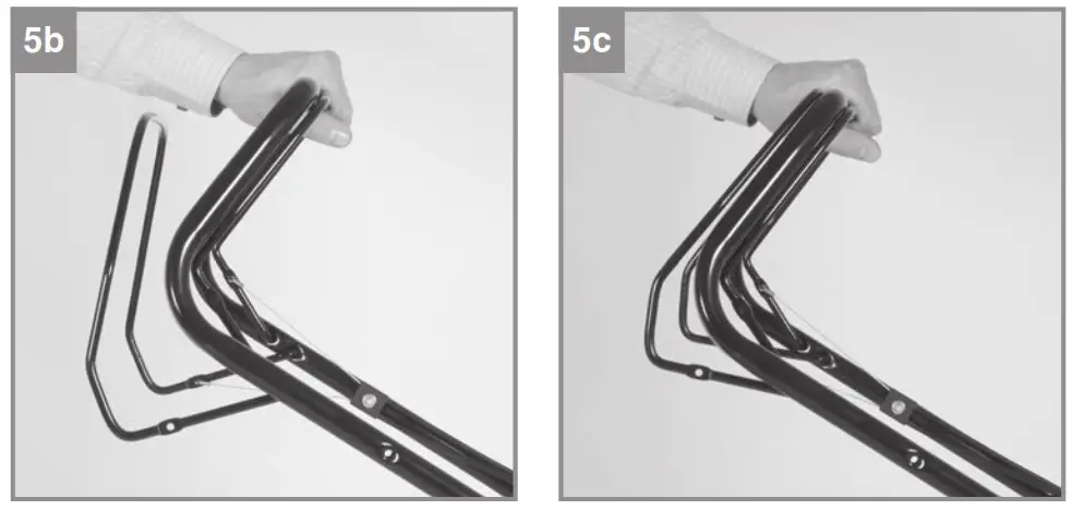- Unhook the starter cable from the hook (Fig. 3c). Slacken the connection shown in Fig. 3b on the left and right of the push bar and swing down the upper push bar. Make sure that the actuator cables do not get kinked when the bar is pulled up.