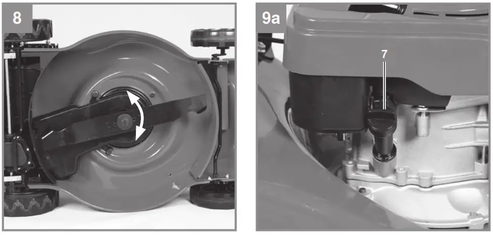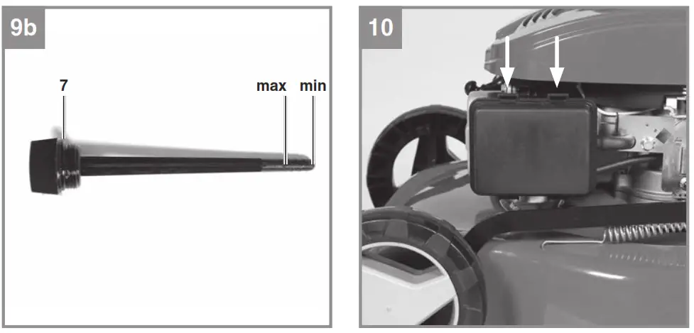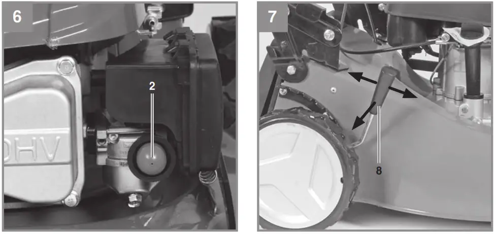- Fill with oil and fuel before starting the mower.