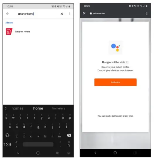 - Tap ‘Authorise’ to grant Google permission to access the Smarter Home™ app and your devices.