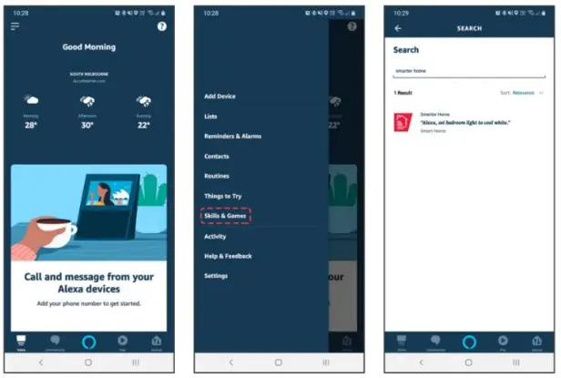- Select the search bar and type ‘Smarter Home’ to locate the Kogan SmarterHome™ skill.