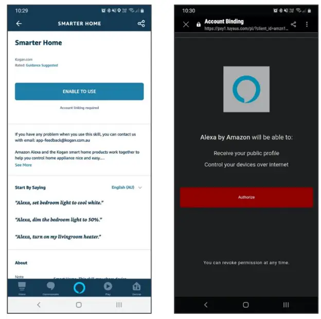 - Tap ‘ Enable to Use’ to add the Kogan Smarter Home™ skill to Alexa.