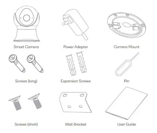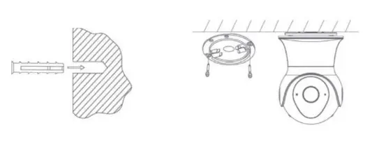 - Fix the camera mount on the ceiling using the supplied screws (long).