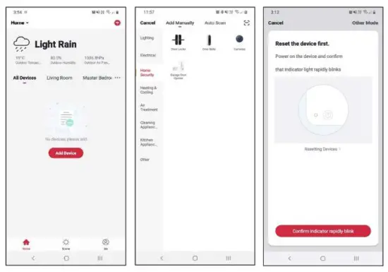 - Ensure that the device is in pairing mode, with the status light flashing rapidly, and tap “Confirm light is rapidly flashing”.