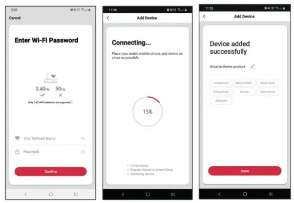 - The device will commence the pairing process and connect to the app. Ensure your Wi-Fi router, mobile phone, and the SmarterHome™ device are kept close until the connection is complete.