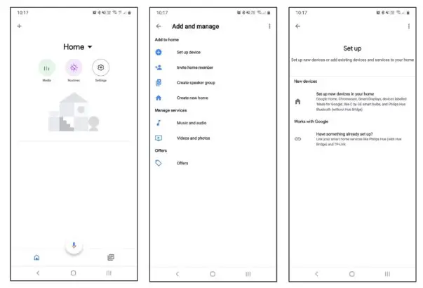 - From the home page of the Google Home app, select the “+” icon to access the ‘Add and manage’ page.