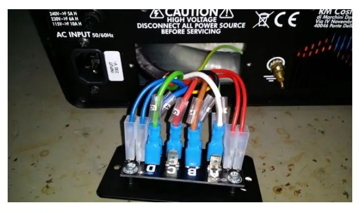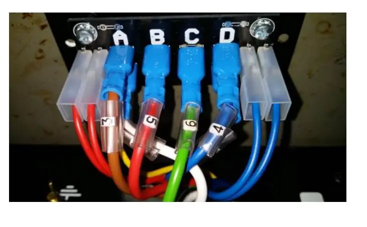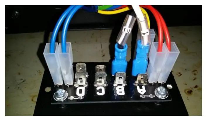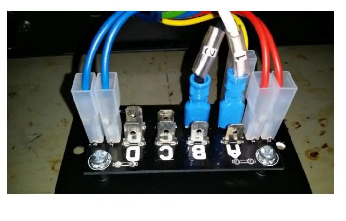 Connect cable “4” to one of the spade lugs labelled “D”