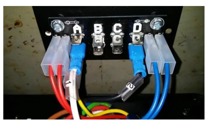 Connect cable “2” to one of the spade lugs labelled “D”