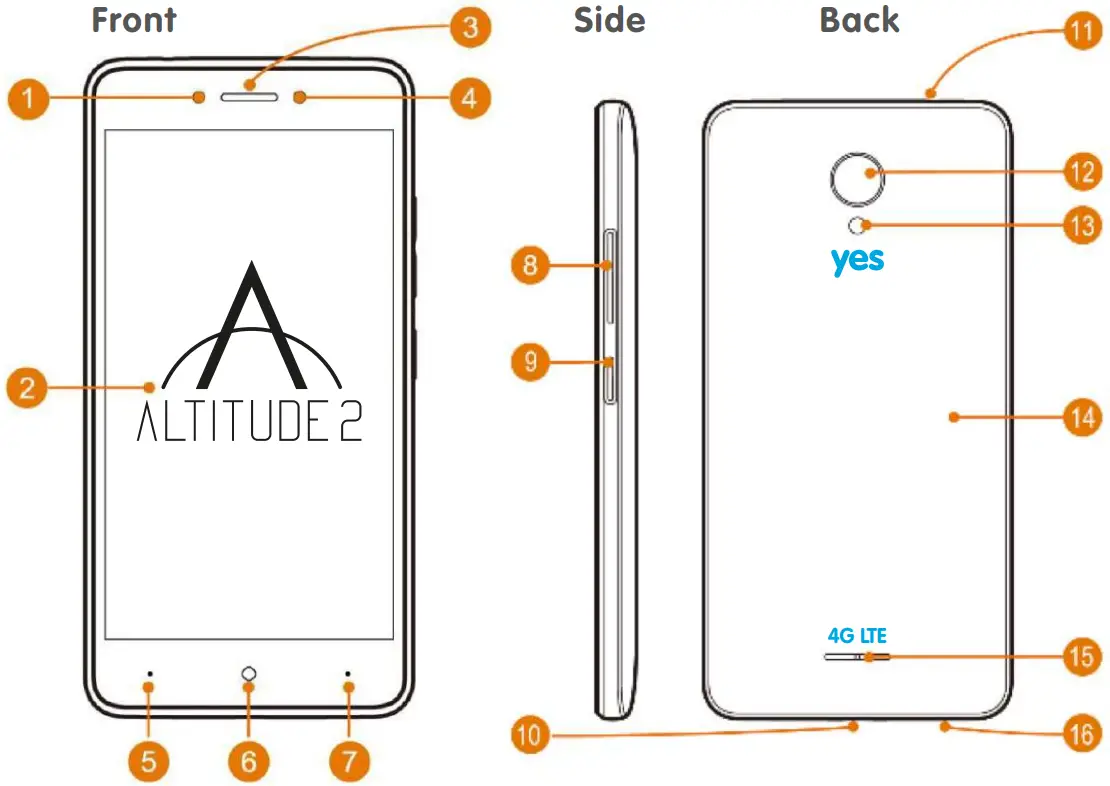 - Home Key : Press this button to return to the main screen. Long press this button and slide upwards to enter the search mode;