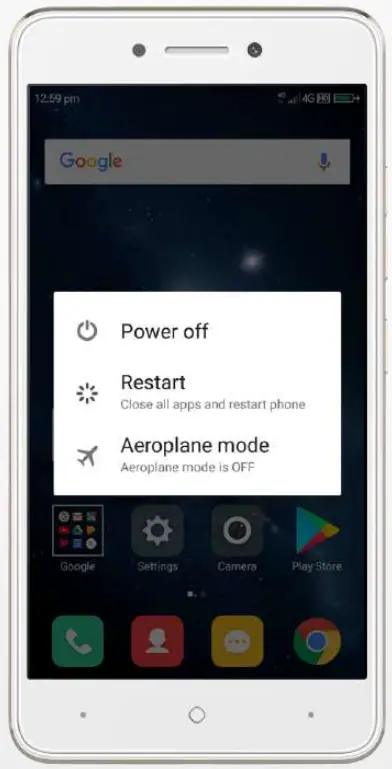 - Long press it to show power off, reboot and airplane mode options.