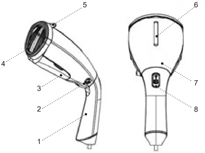 - For continuous steam supply move the button (8) towards the handle (1), to switch the continuous steam supply off, move the button (8) backwards.