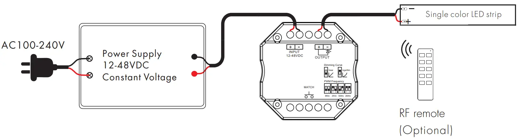- Compatibility with RF 2.4G dimming remote control.