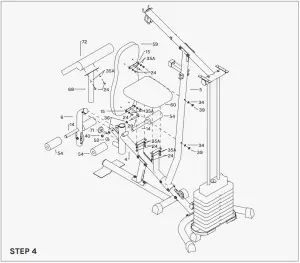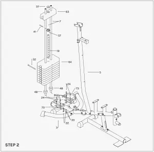 - Insert the Select Pin (32) through the Weight Stack (64) into the hole of Select Bar (19).