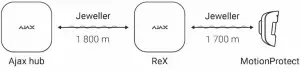 ReX expands the radio communication range of the security system allowing installation of Ajax devices at a greater distance away from the hub.