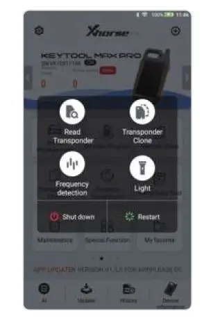 KEY TOOL MAX PRO is a professional smart device with multi-function, Bluetooth and WIFI communication interface are integrated inside, which is convenient for connecting and controlling Xhorse Key Cutting Machine. Supports various OBD functions such as Vehicle diagnosis, lImmo programming, Throttle program, TPMS, and the Maintenance light reset.