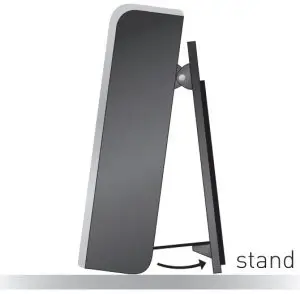 The monitor comes with a magnetic backing to stick on the fridge. Use pop-out stand for tabletop use