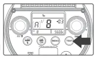 To fire the flash without taking a picture, press the test button. It can also help adjust the flash output and light brightness when combined with the light brightness adjustment button. Hold down the light brightness and turn on the light, the version will be displayed on the LCD panel and this operation can also be used to restore factory setting.