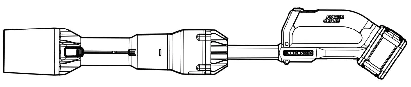 | Air speed mode NOTE: The blower is in the air speed mode for default assembly. NOTE: The blower has two working modes: air speed mode and air volume mode. To change modes, depress the nozzle release button and slide backward for air speed mode. Slide forward for air volume mode. Choose a suitable mode according to your work: – AIR SPEED MODE offers a high-speed, concentrated airflow for sweeping smaller areas, clearing debris out of grass, or dislodging heavy or wet leaves. – AIR VOLUME MODE offers a high-volume of mass airflow to cover a larger area or on hard surfaces. ![]() | See Fig. E |