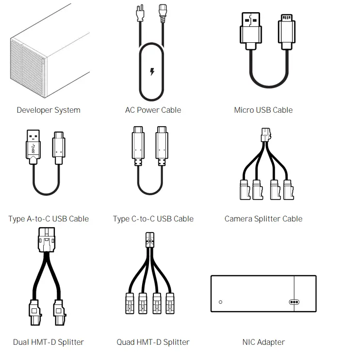 Disclaimer: The line-art images shown here are for illustration purposes only. Your Developer Kit accessories may differ due to product enhancements, modifications, and substitutions.